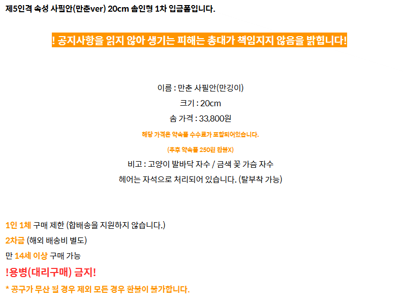 인형 특징 / 사진 / 구매 관련 사항 들을 최대한 적어 둡니다