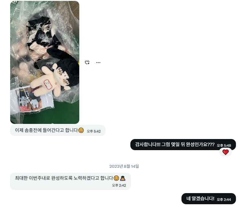 경험이 있는 상태였다면 같이 진행했을텐데... 시간도 오래걸리고 문제가 생기면 해결해야 할 게 2배가 되는것은 물론이고 인형가격을 우선 내가 부담해야했던것도 살짝 부담스러움도 있었기에....