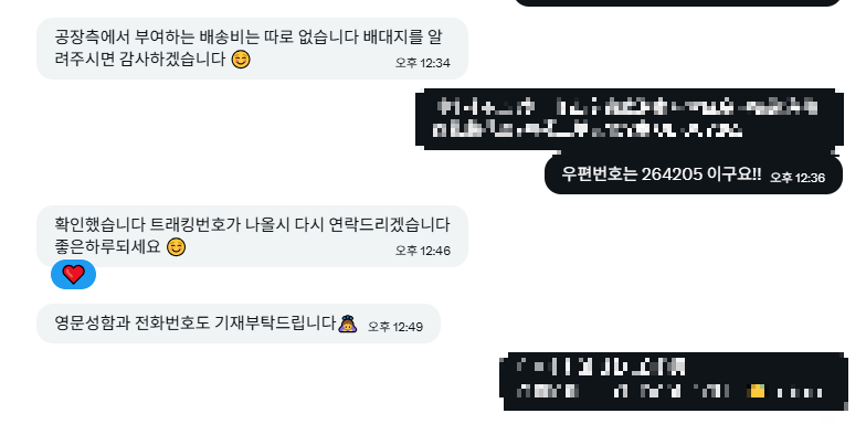 우선 공장측에 배송대행 측 주소를 알려드리고 트레킹 번호를 받습니다