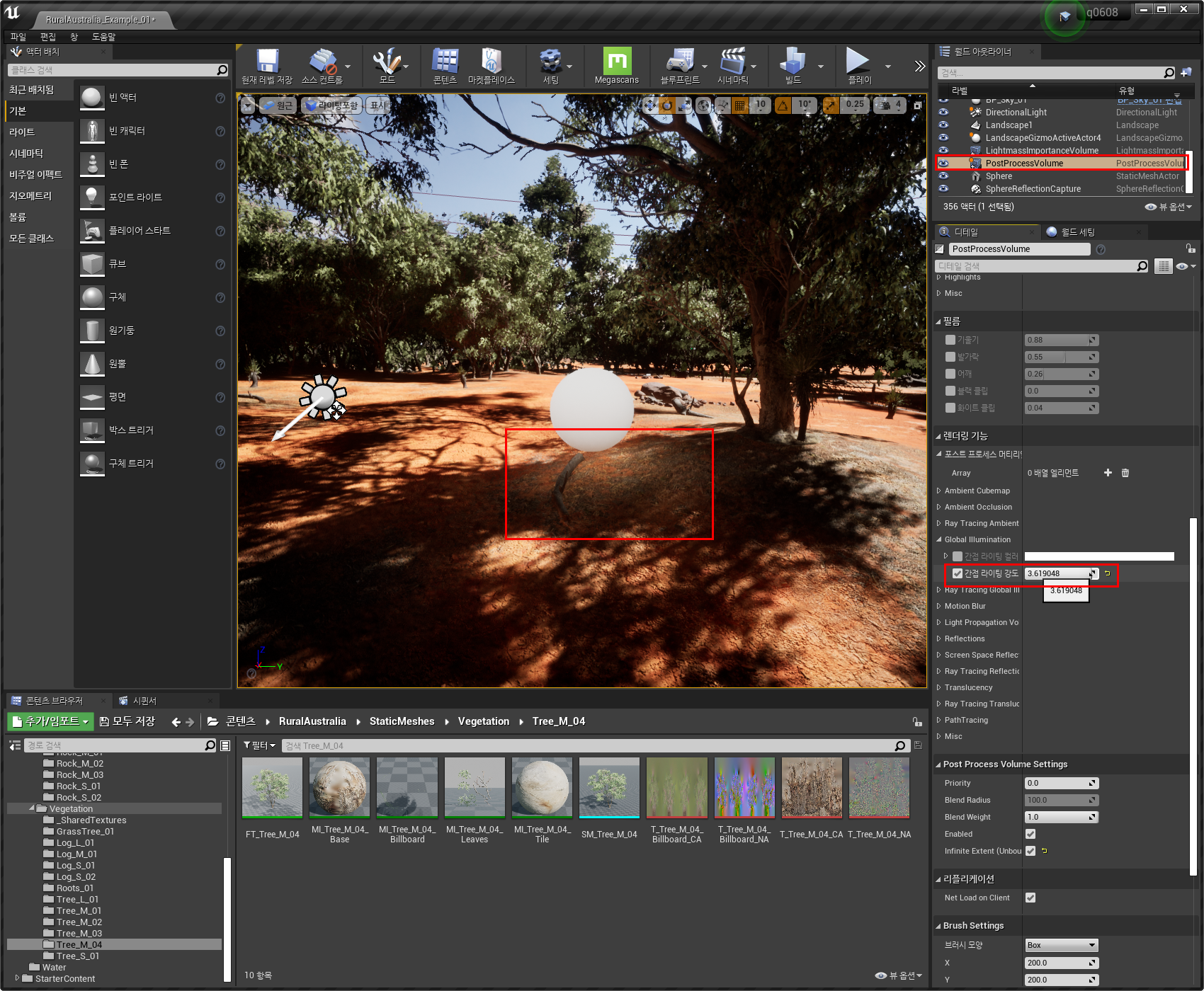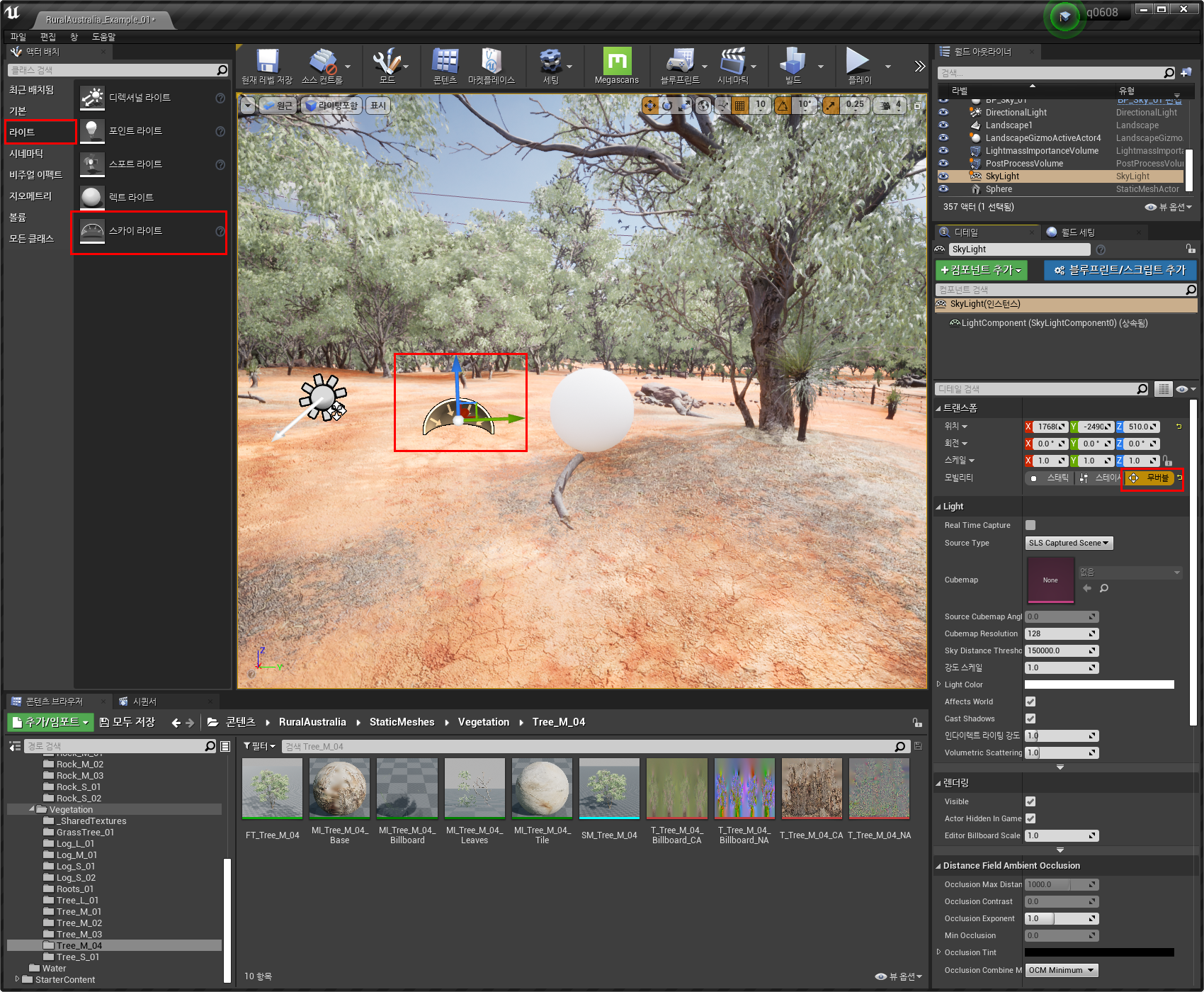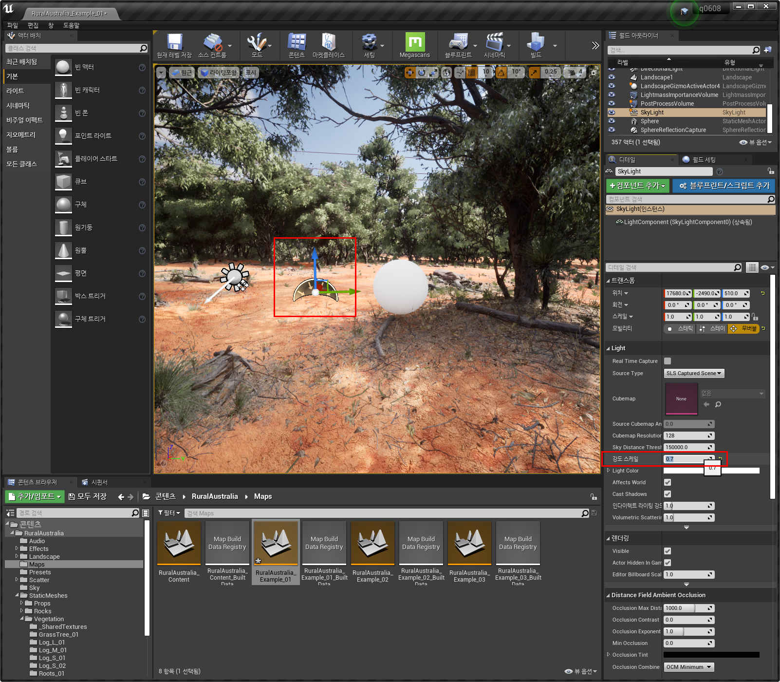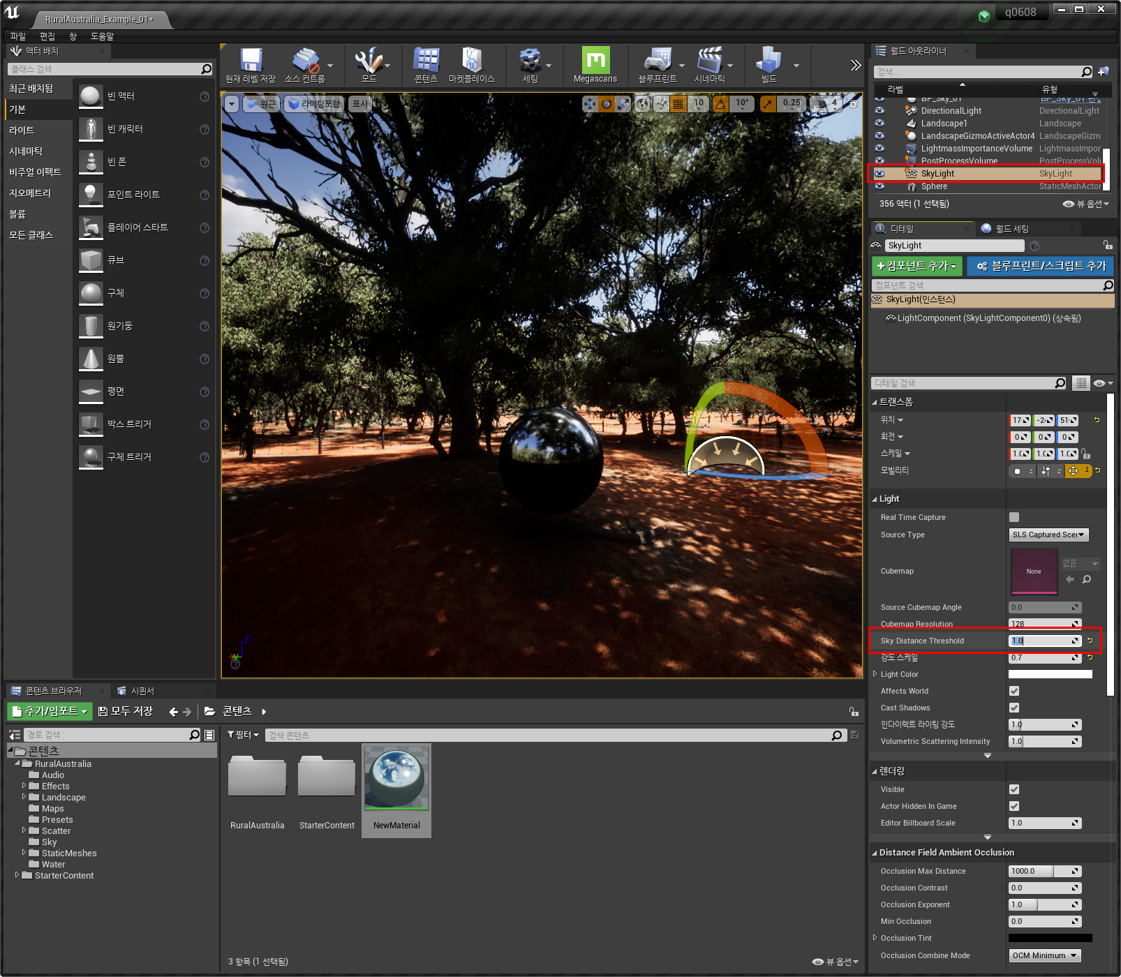 - 메시 디스턴스의 값은 스카이 라이트에서 조절할 수 있음