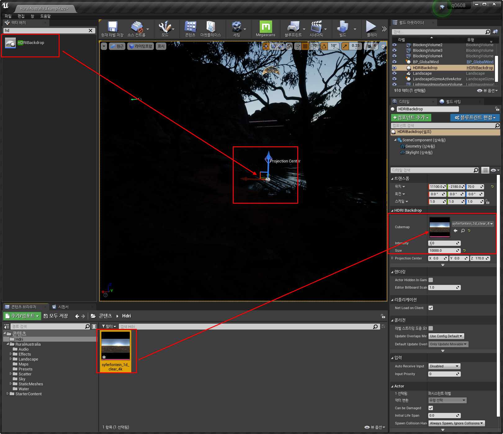 1) HDRIBackdrop(플러그인) 넣어주고 다운받은 해지는 HDRI 넣어주기
