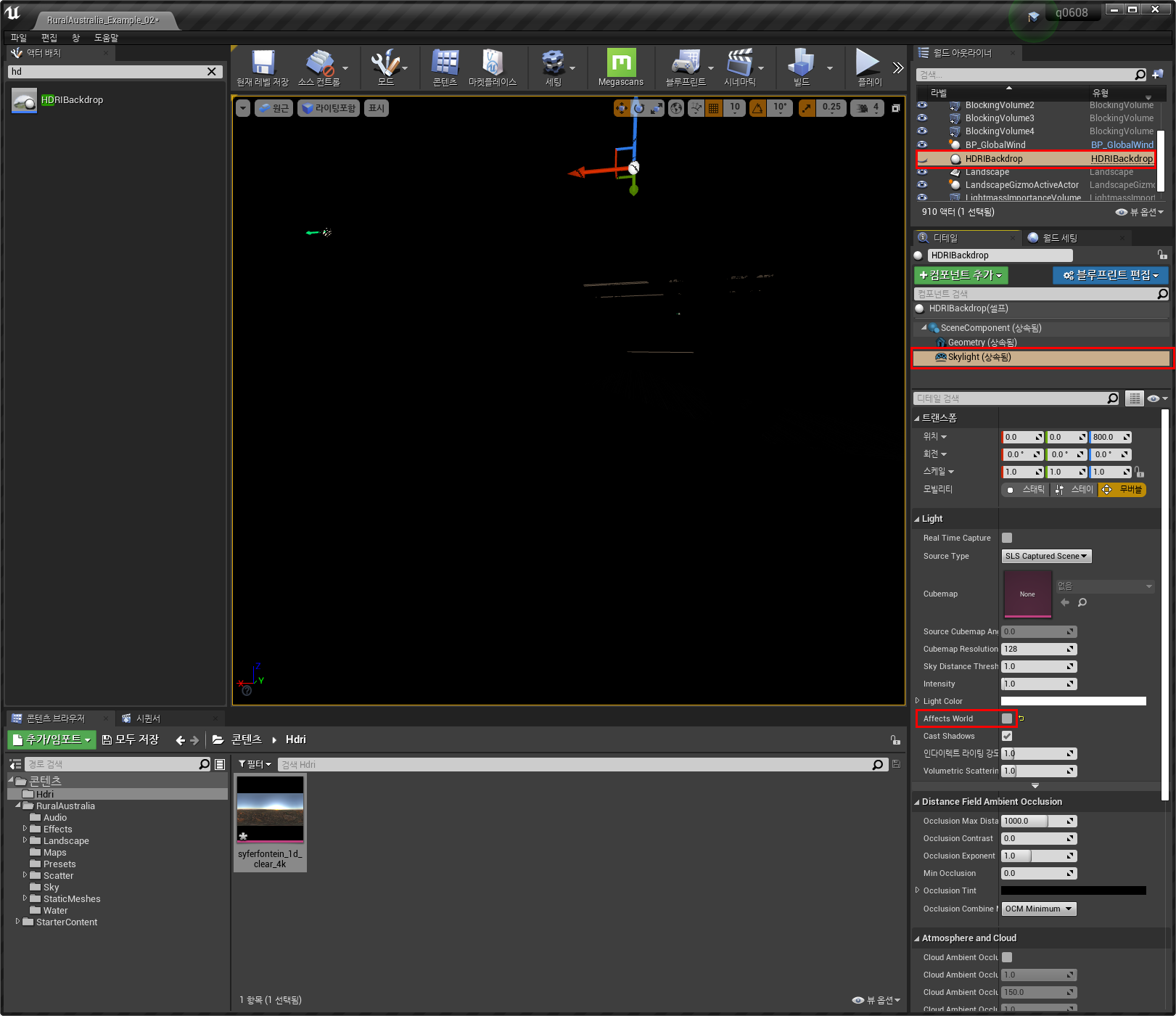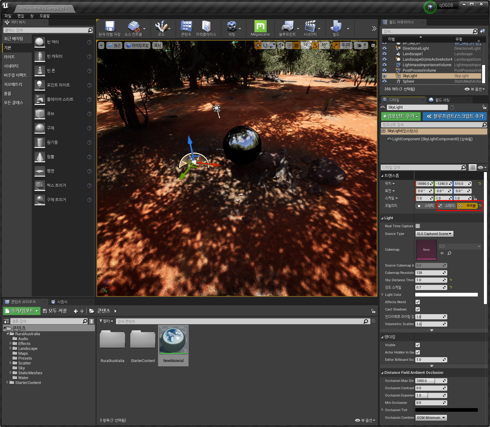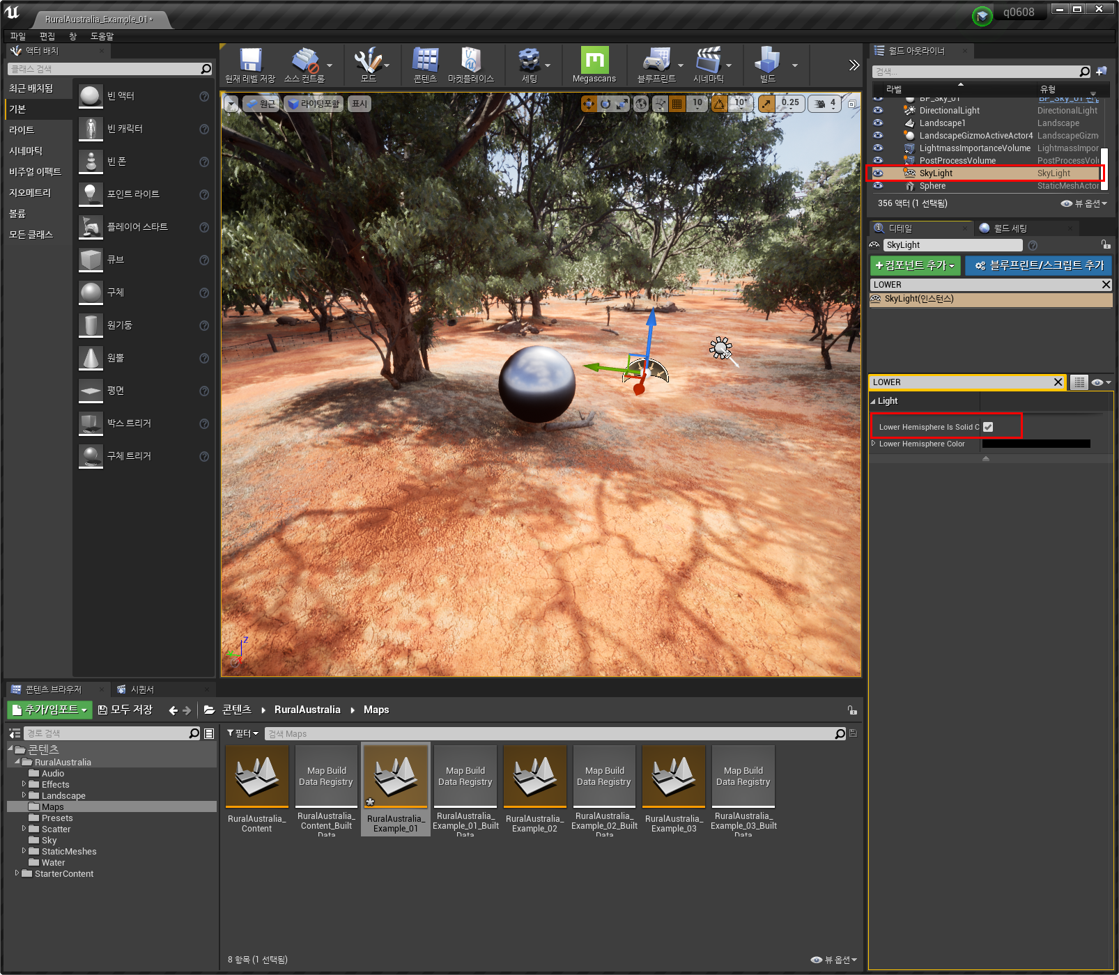10) 스카이라이트의 Lower Hemisphere Is Solid Color의 색을 조절 해주기