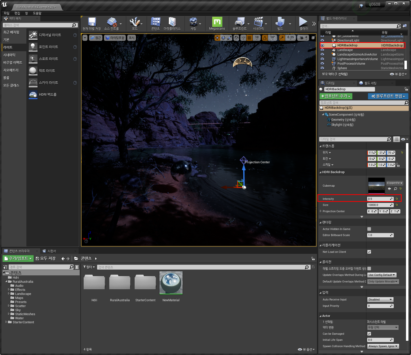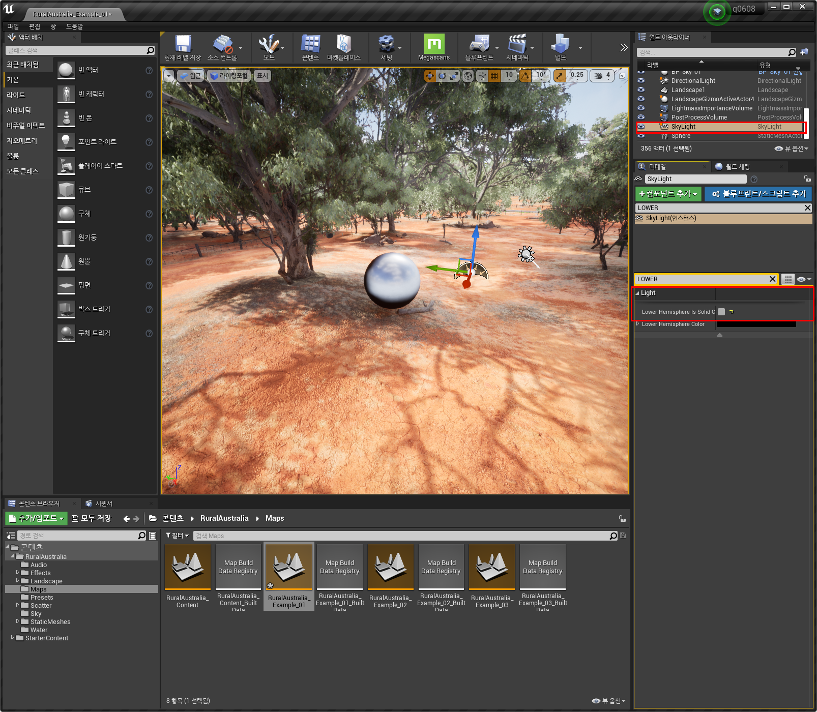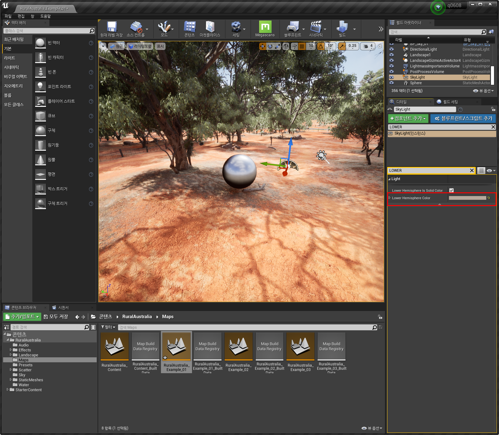 10) 스카이라이트의 Lower Hemisphere Is Solid Color의 색을 조절 해주기