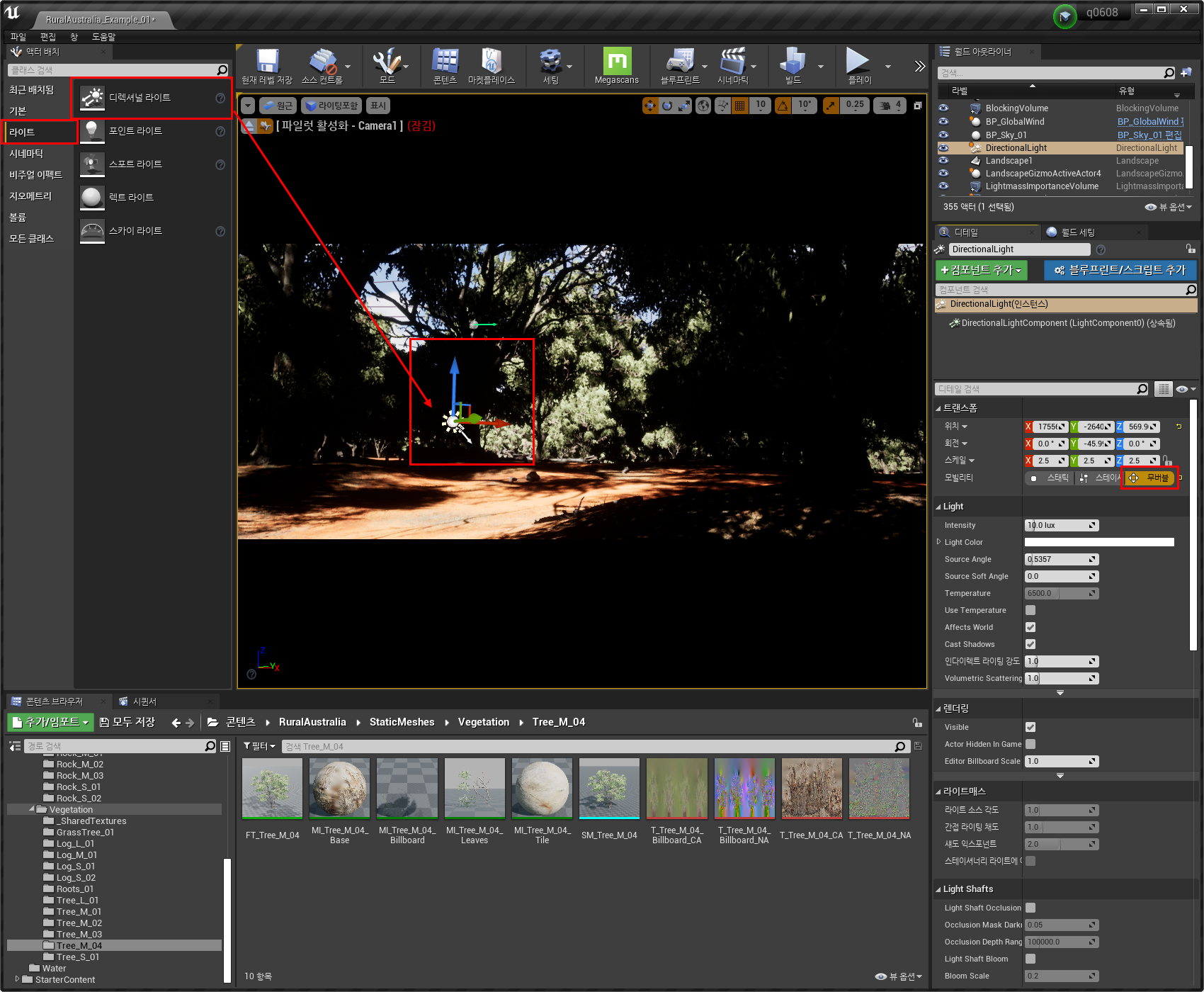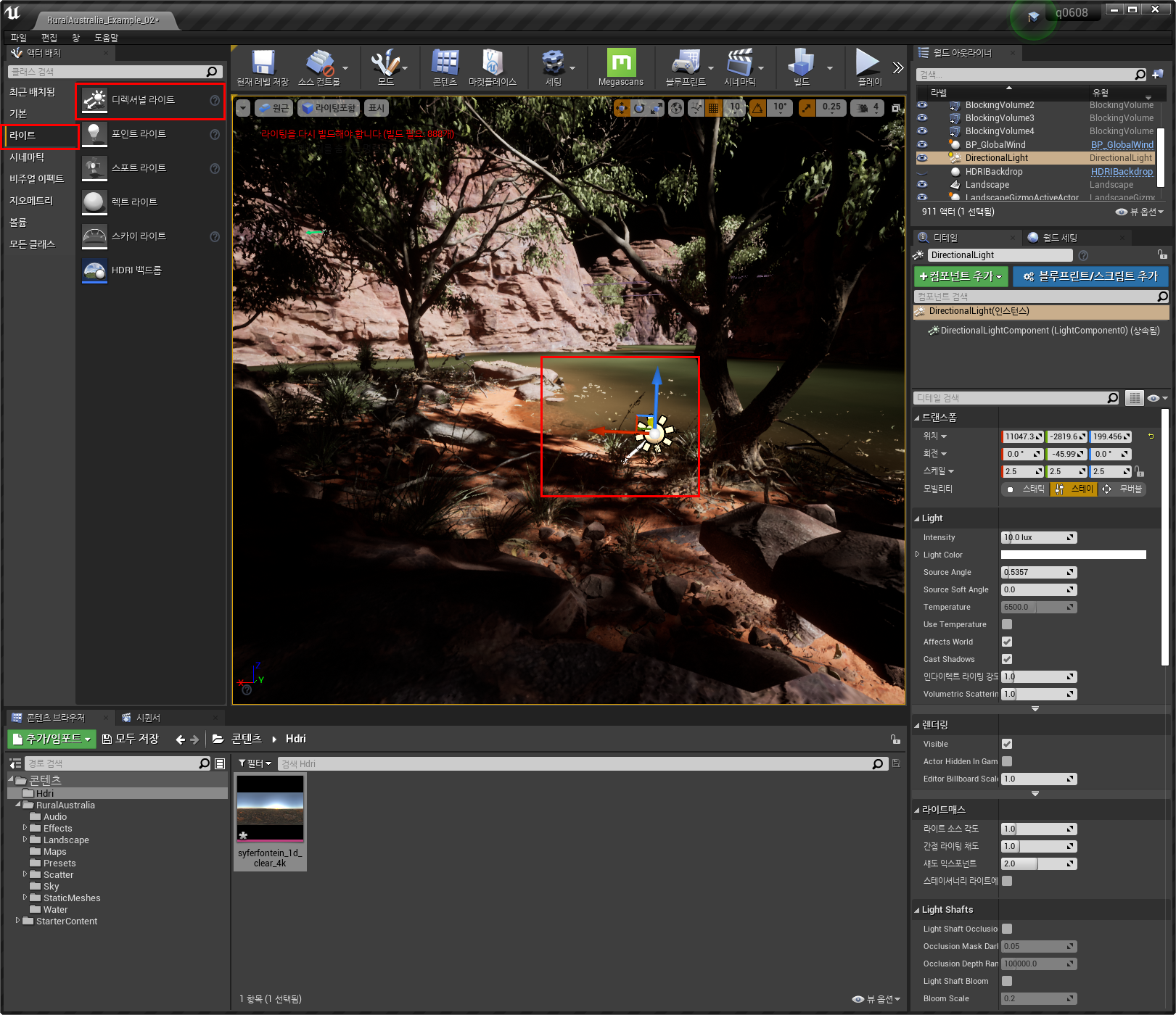 해의 위치를 변경 시킨후 - 스카이 라이트에서 썬캡쳐 해준 뒤 햇빛에 맞게 Directional Light의 빛 방향 조절 해주면 됨