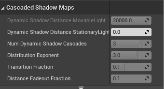 | Dynamic Shadow Distance Stationary | 다이나믹 그림자 + 라이트 맵 그림자 즉, 1000이라는 수치면 카메라기준 0 ~ 1000까지는 다이나믹 그림자 1001부터는 라이트 맵 baking 그림자로 그림자가 움직이지 X |