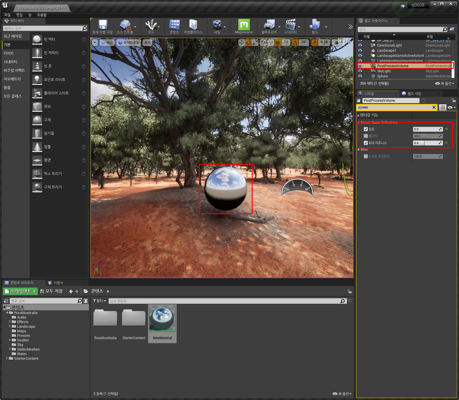 4) 포스트 프로세스 볼륨에서도 인위적으로 반사광을 만들 수 있음