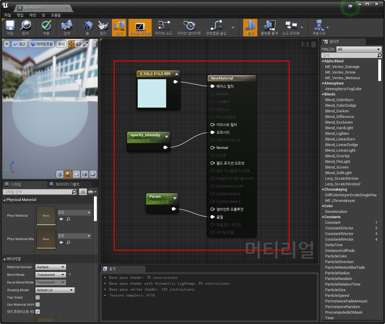 1) 머티리얼에서 blend mode를 translucent로 해주기