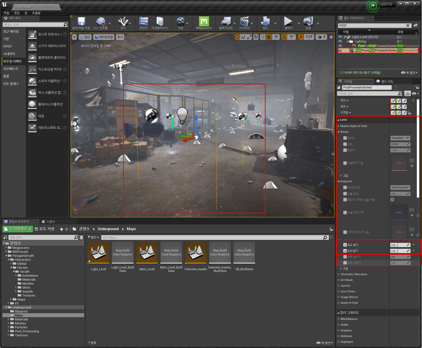 1) 포스트 프로세스를 만들면 노출도 부터 조정해주기