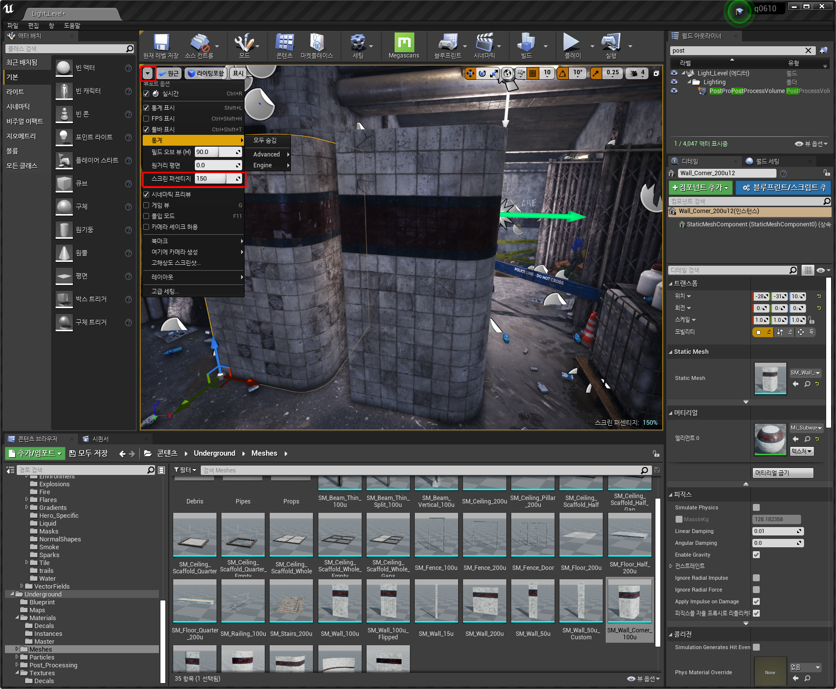 스크린 퍼센티지의 값을 올려주기(단, 튕길 수 있음)