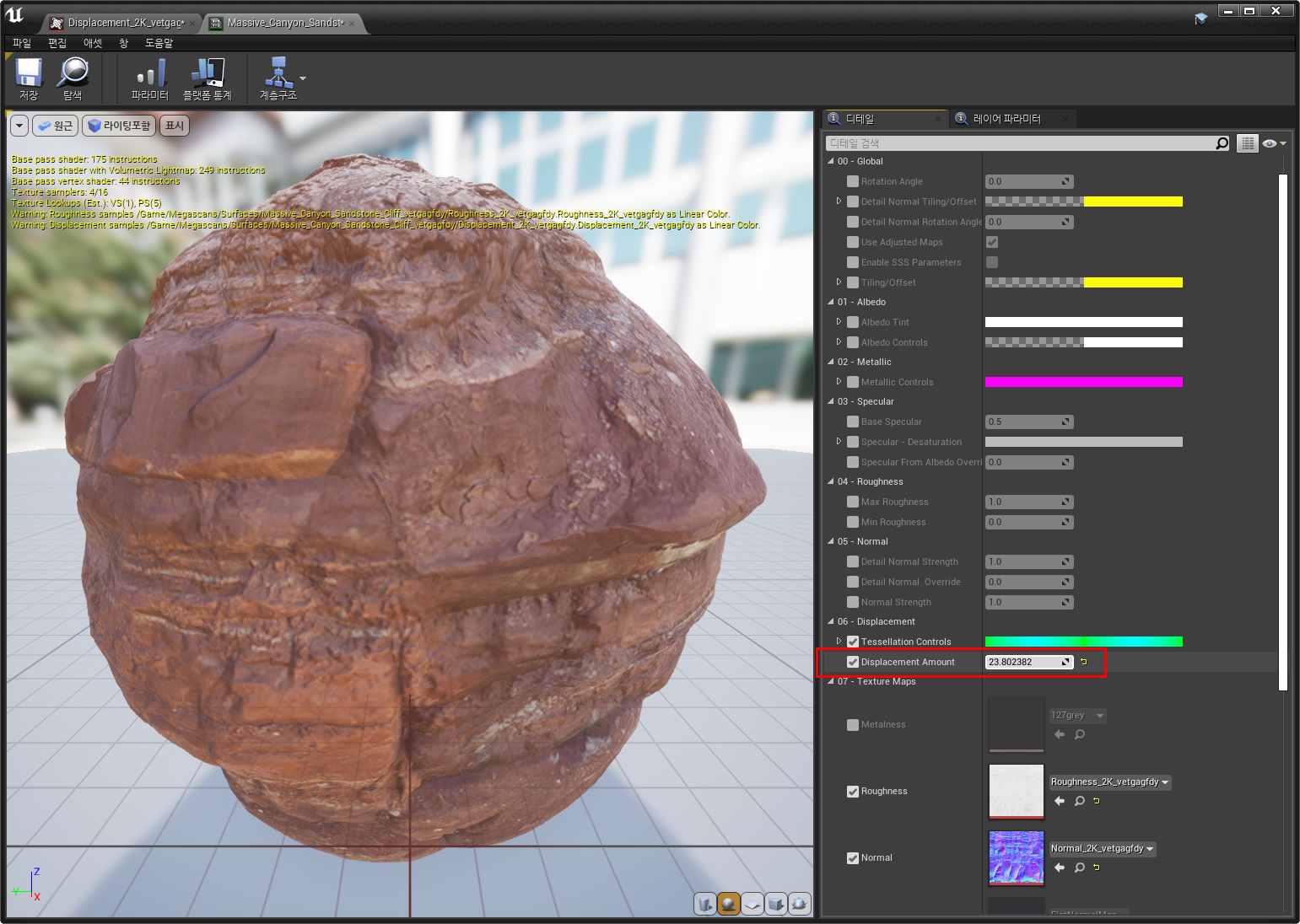 4) 가져온 텍스쳐에 디스플레이스 옵션이 들어있음