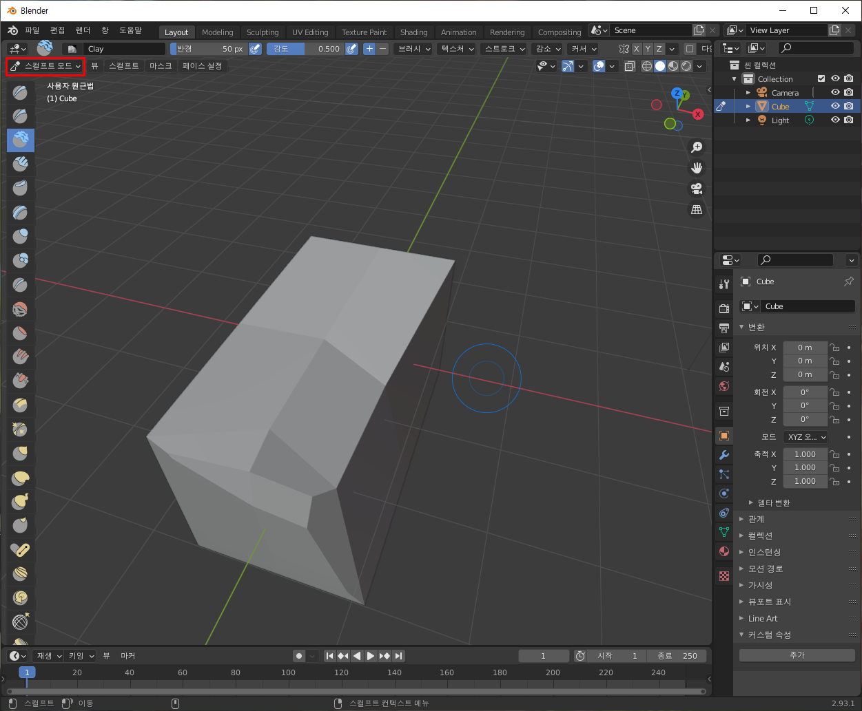 2) 에디트 모드로 해주면 점,선,면 편집해 줄 수 있음