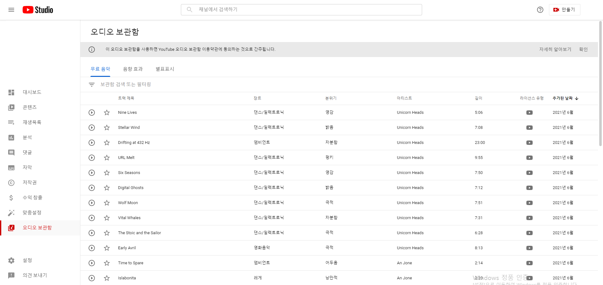 https://studio.youtube.com/channel/UCtbxE7Lea7odahZfGO5zBag/music