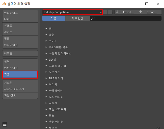 1) 편집 - 환경설정 - 키맵에서 Industry Compatible해주면 맥스와 마야랑 키가 똑같다
