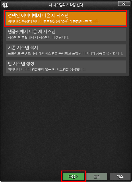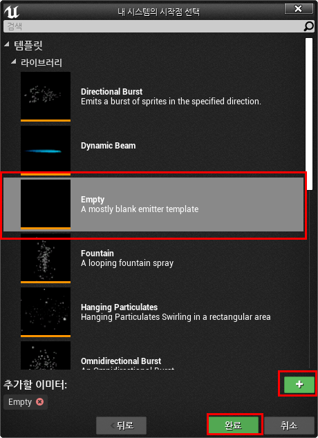 2) 선택된 이미터에서 나온 새 시스템 - Empty를 추가하고 완료하기