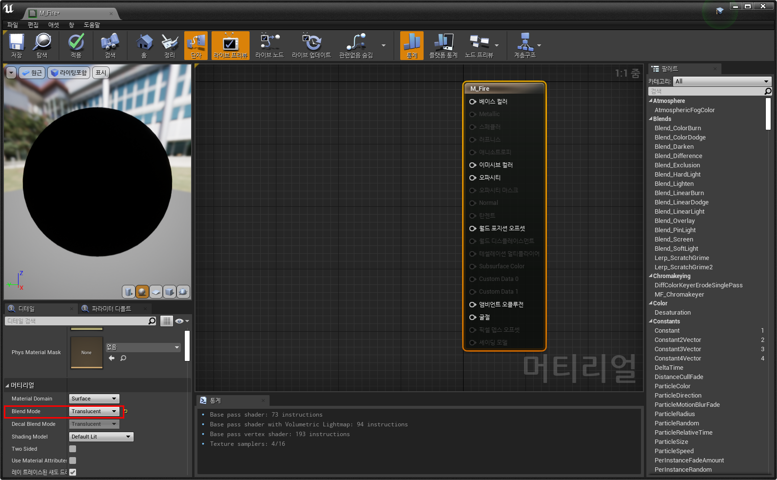 2) 머티리얼 디테일의 Blend Mode를 Translucent로 바꾸기