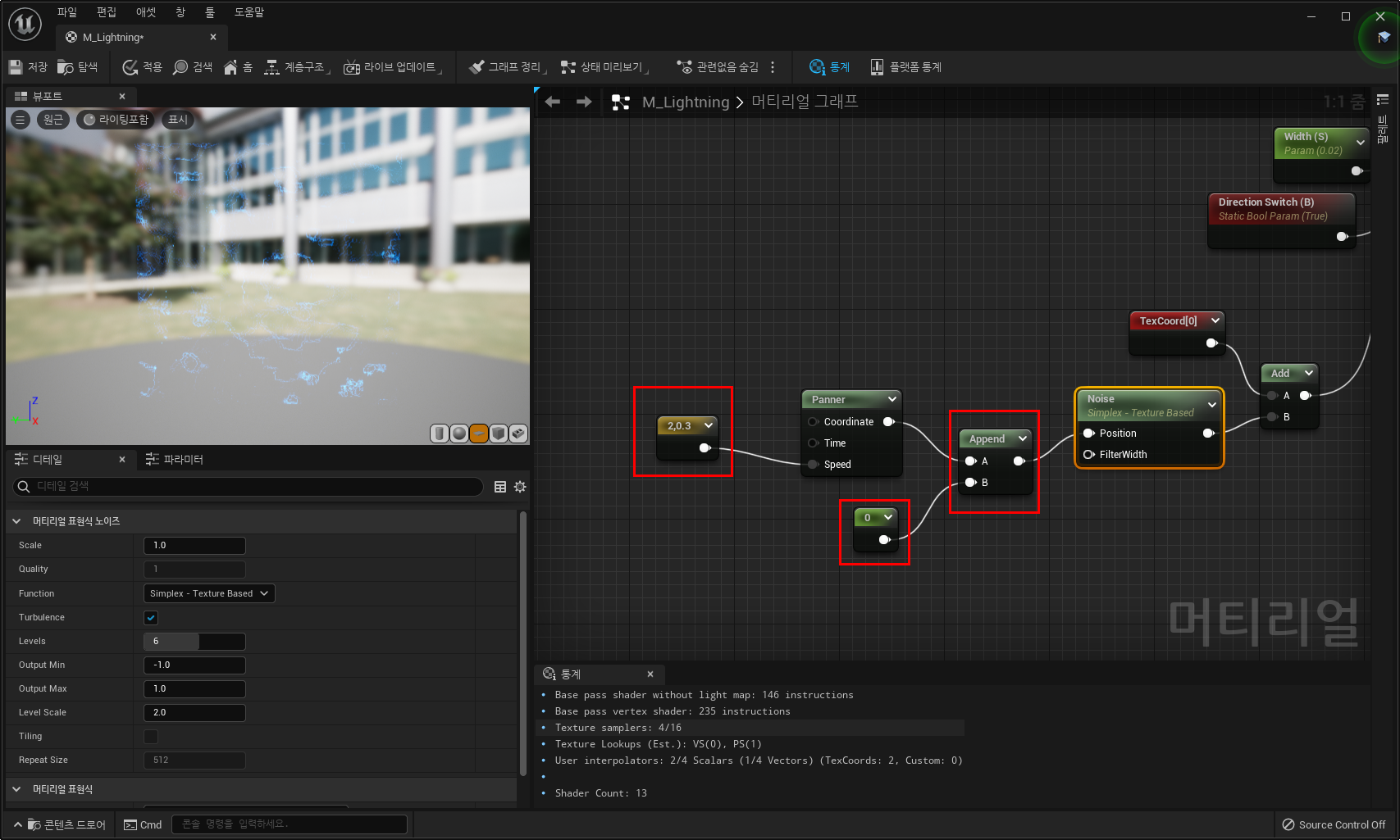 11) 수치를 바꾸고 Append 노드를 이용하여 노이즈 노드와 연결