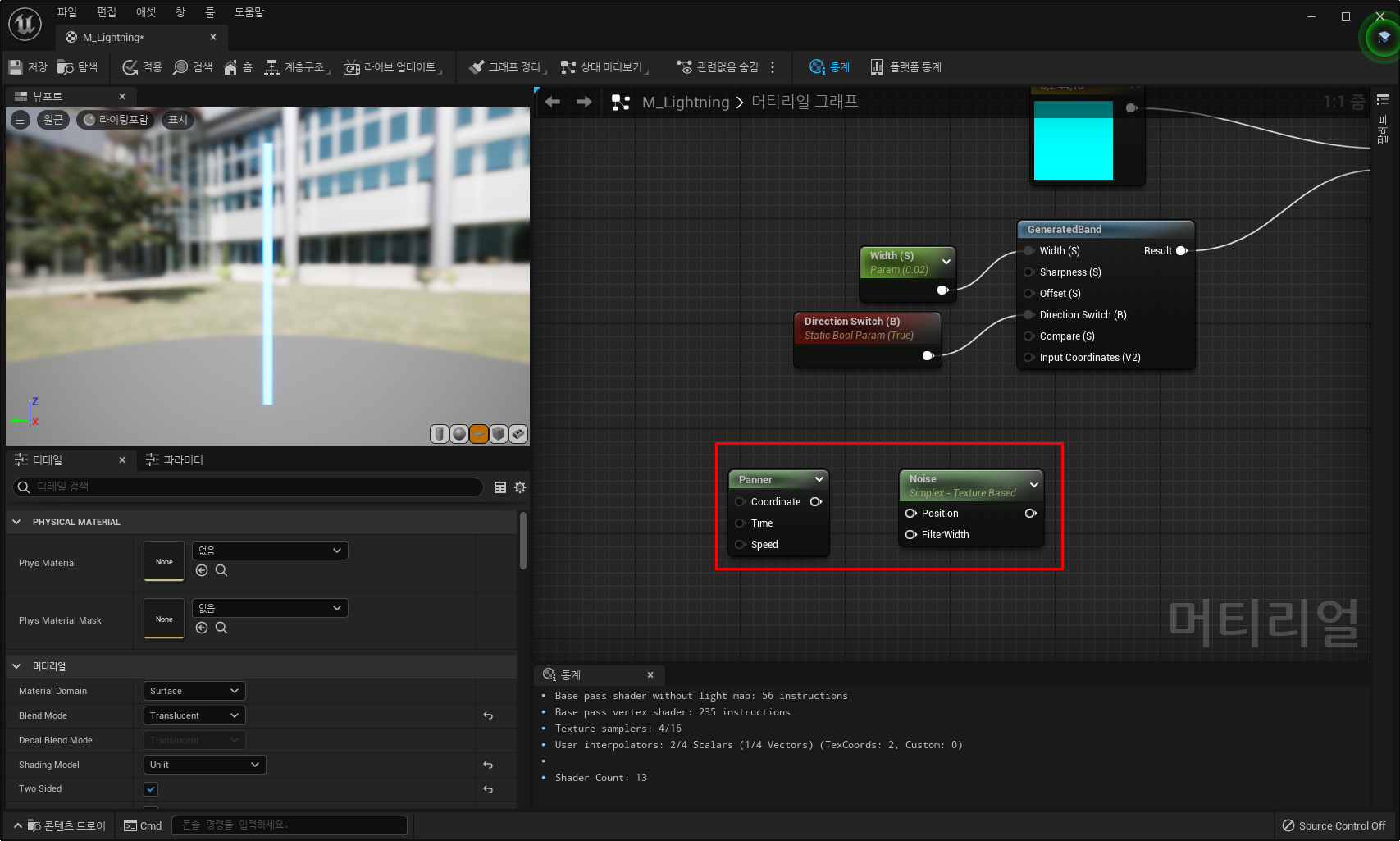 Panner : Y축 또는 X축으로 텍스처를 이동시킬 때 사용