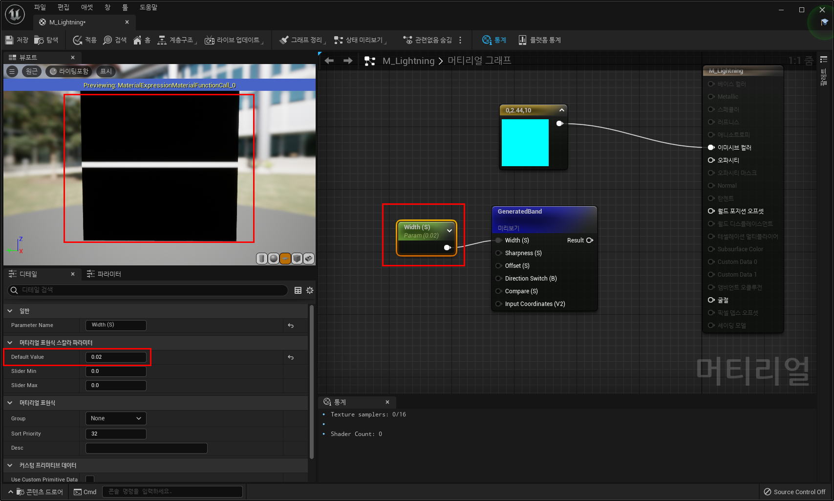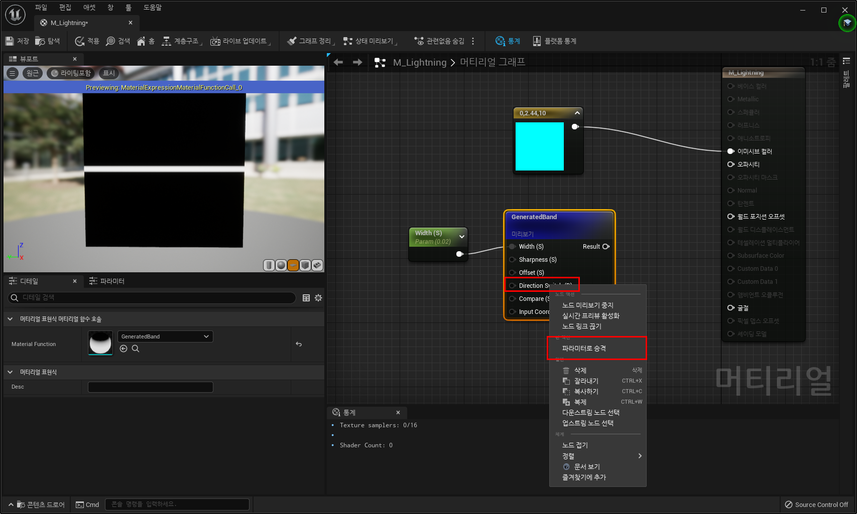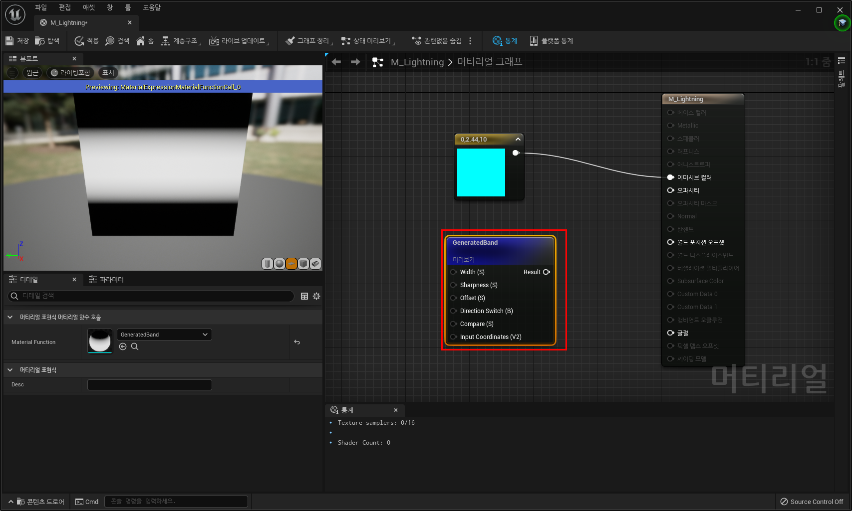 3) 얇은 선의 모양을 만들기 위해 GeneratedBand 노드 추가